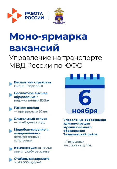 Моно-ярмарка вакансий Управления на транспорте МВД России по ЮФО.