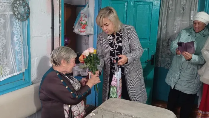 В знак почтения и благодарности Нине Григорьевне преподнесла памятные подарки и цветы Председатель совета Роговского сельского поселения С.В. Залозняя. Так же Светлана Владимировна вручила имениннице адресное поздравление от главы муниципального образования Тимашевский муниципальный район А.В. Палия. Коллектив народного хора «Зори Кубани» (руководитель М.Н. Гафиатуллин) подарили трогательные душевные песни.
