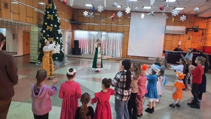 Маленькие зрители собрались в уютном зале, чтобы встретить любимых героев и окунуться в атмосферу чуда. Василиса Премудрая встретила детей и их родителей у Волшебной Ёлки. Они закружились в сказочном новогоднем танце. А весёлый Снеговик принёс посылку Деда Мороза детям, приглашая их в сказку, навстречу приключениям. Но вот незадача, коварный Кощей Бессмертный ухитрился похитить нашу любимую Снегурочку, превратив праздник в увлекательную спасательную операцию с загадками, танцами и песнями вместе с Лешим, Кикиморой и солистами вокального коллектива «Ассорти» (Рук. О. А. Чевычелова) и к счастью, с благополучным финалом для всех!