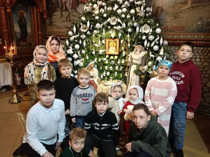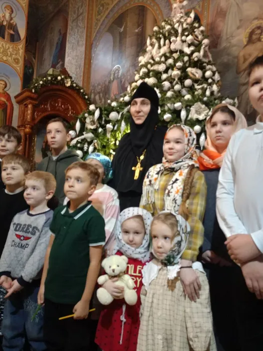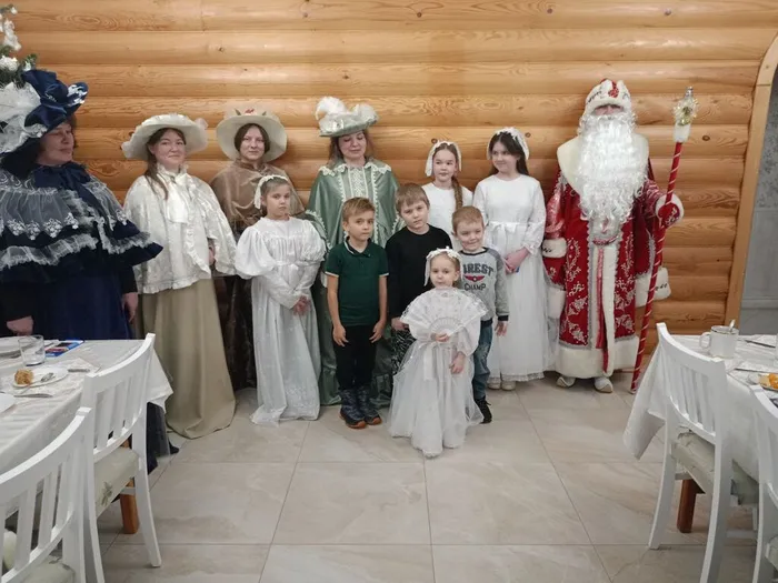 В храме своим убранством порадовал Рождественский вертеп! А за чаепитием всех присутствующих поздравил Дед Мороз, который загадывал загадки, устраивал конкурсы стихов и песен, за весёлые стихи и песни, участники получили памятные призы. Финалом мероприятия стал показ мод женских платьев 19 века. Встречей остались довольны все. И с большим пожеланием ещё раз встретиться захотели и дети, и взрослые. Спасибо матушка Тавифа за такие тёплые и радушные встречи