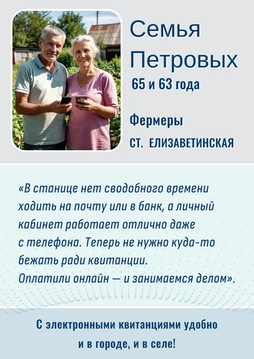 Мы собрали истории наших абонентов — людей из городов и станиц, которые однажды выбрали удобство и больше к бумажным квитанциям не вернулись.