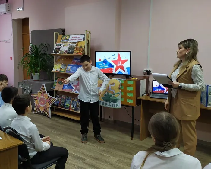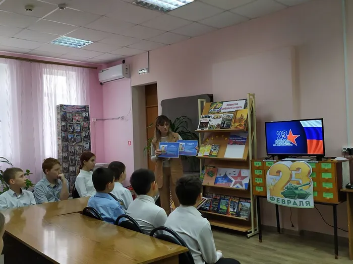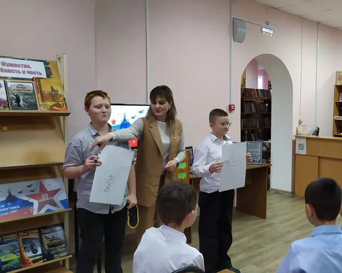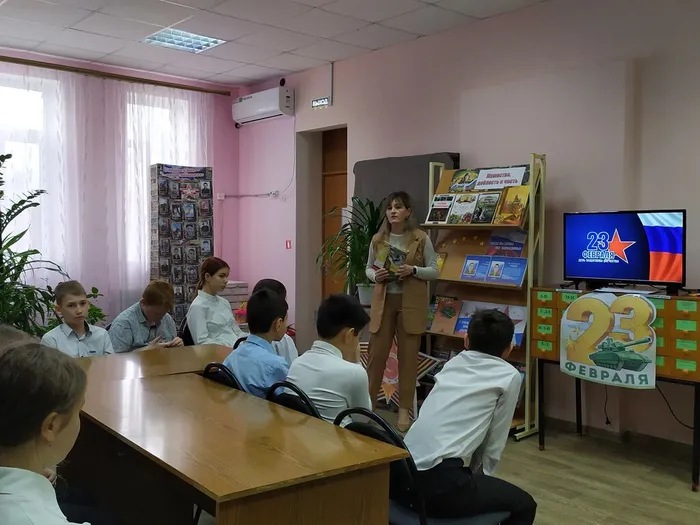 В завершение встречи ребята познакомились с книжной выставкой «Мужество, доблесть и честь», на которой были представлены как художественные произведения, так и энциклопедии о военной технике и великих сражениях.