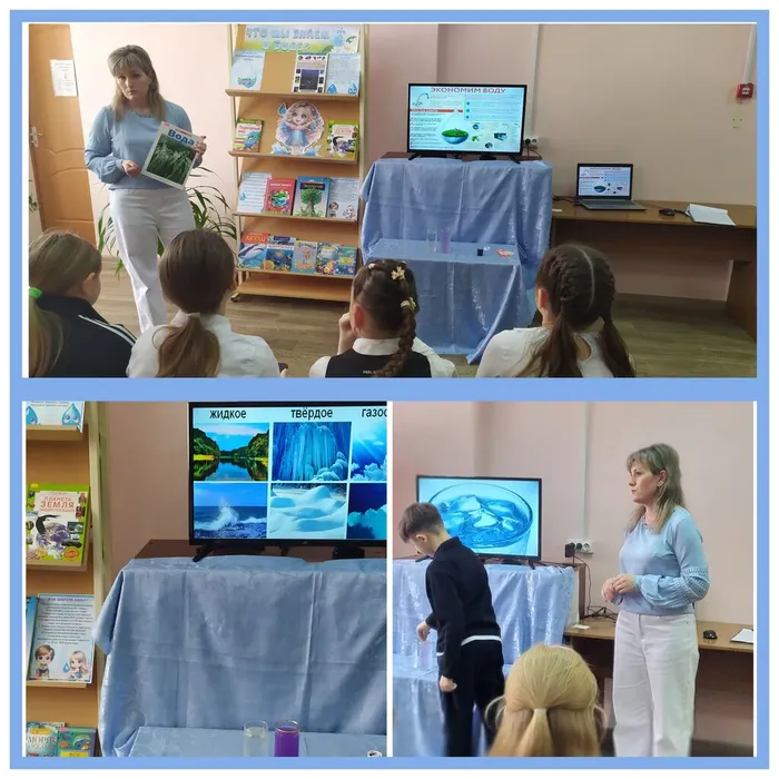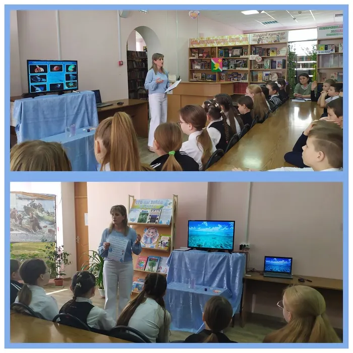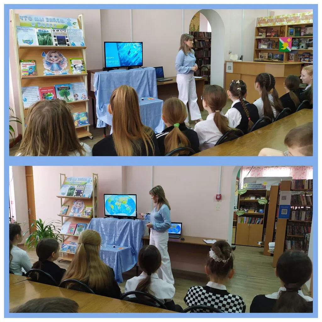 Завершилась встреча обсуждением экологических проблем, школьники сами предложили способы экономии воды в быту. К мероприятию была оформлена книжная выставка «Что мы знаем о воде», на которой были представлены энциклопедии и научно-популярные издания о реках, морях и обитателях глубин.
