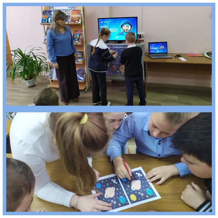 Зал библиотеки на время превратился в центр управления полётами. Разделившись на экипажи «Восток» и «Союз», ребята отправились в виртуальное путешествие по Солнечной системе. Игра состояла из нескольких «орбит» - раундов разной сложности. Выполняя интересные задания, школьники демонстрировали знания о планетах и созвездиях, вспомнили имена людей, которые внесли весомый вклад в изучение космоса и развитие отечественного ракетостроения. Дети учились работать с информацией из книг и отвечали на каверзные вопросы о быте на МКС.