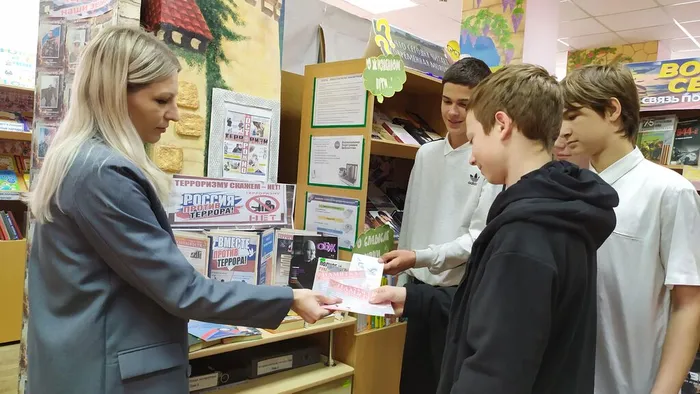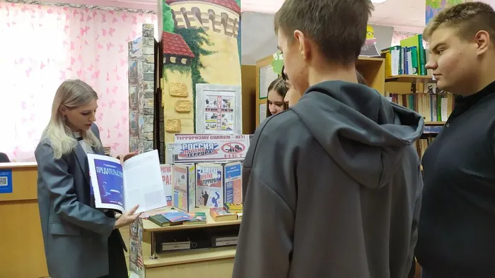 Сотрудники библиотеки собрали юных читателей, чтобы в доверительной и одновременно серьезной обстановке обсудить вопросы личной и общественной безопасности. Библиотекарь напомнила ребятам о правилах поведения при обнаружении подозрительных предметов, о важности бдительности в местах массового скопления людей и о недопустимости распространения недостоверной информации в соцсетях. Особое внимание в ходе беседы было уделено современным вызовам. В условиях текущей геополитической обстановки организаторы сделали акцент на правилах поведения при беспилотной опасности. Молодежи подробно объяснили, как распознать звук БПЛА, куда немедленно укрываться в случае сигнала тревоги и в какие органы обращаться в случае угрозы. «Мы живем в эпоху, когда знания спасают жизни. Важно не только говорить “нет” террору, но и четко знать, что делать, если опасность рядом, в том числе и с воздуха», — отметил библиотекарь в ходе диалога с участниками мероприятия. На выставке «Терроризму скажем — нет» были представлены памятки, тематические папки и наглядные материалы, которые ребята смогли забрать с собой для изучения в кругу семьи.