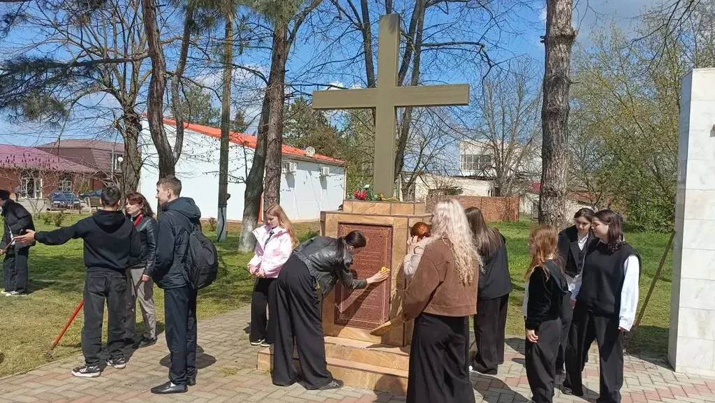 Ученики 9 «В» класса совместно с администрацией станицы провели уборку памятников — привели в порядок прилегающую территорию и отдали дань уважения памяти героев.
